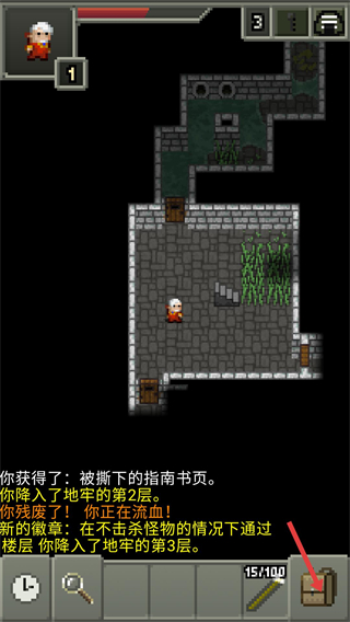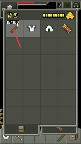1、根據提示點擊背包,可在背包內查看所獲得的物品,可用來補充血量,阻擋傷害。