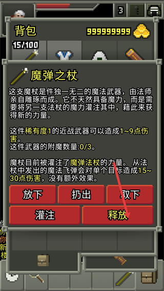 3、魔彈之杖法術攻擊可對單體目標造成傷害,戰斗中點擊釋放按鈕實現遠程消耗。