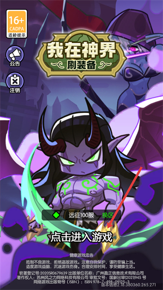 1、點擊點擊進入游戲按鈕進入我在神界刷裝備的游戲界面,開啟神界的裝備刷取冒險,這是開展游戲的第一步操作。