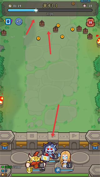 3、戰斗過程中關注關卡進度和怪物分布,合理操控角色移動和攻擊,同時收集金幣資源,為后續角色升級和裝備獲取積累財富。