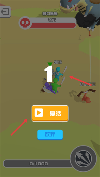 2、戰斗失敗后可選擇復活繼續挑戰BOSS盤龍,該功能可保留當前進度,避免重新開始;也可點擊放棄退出當前關卡。