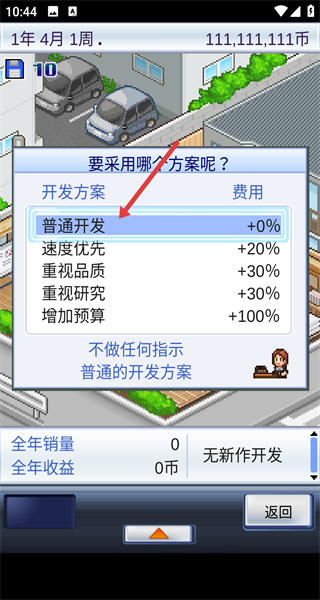 2、在經營界面點擊開發板塊中的新游戲,進入游戲開發的方案選擇環節。