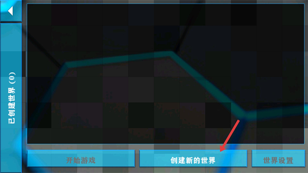 1、界面顯示游戲初始頁面,點擊【創建新的世界】可進入世界配置界面,新手建議先創建新的世界開啟游戲流程。