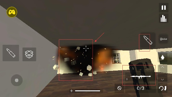 4、玩家需要使用武器攻擊建筑進行破壞,右側顯武器彈藥,關注余量及時補,破壞建筑是核心,持續攻擊推進進度。
