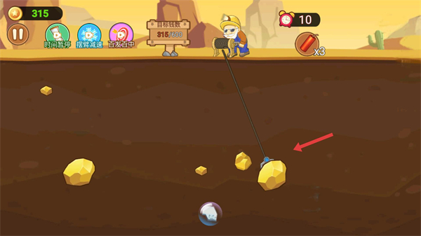 2、操控挖掘工具對準地下的礦石,完成挖掘操作,獲取對應的礦石資源,積累數值以達成關卡目標。