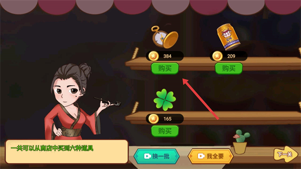 4、查看可購買的道具,選擇想要的道具點擊購買按鈕,消耗資源獲取道具,助力后續的挖掘流程。