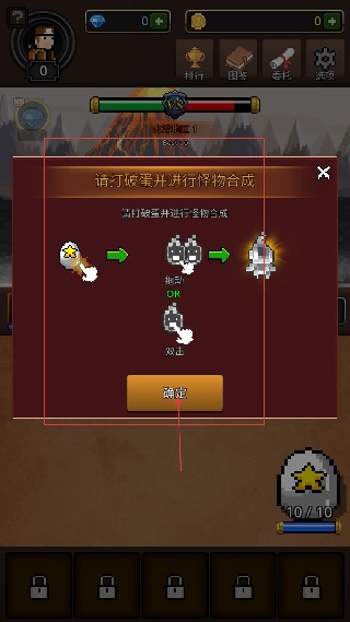 2、需先打破蛋獲取怪物,再通過拖動或雙擊的方式合成更高階怪物,完成合成教程后點擊確定,即可開啟實際的合成與戰斗玩法。