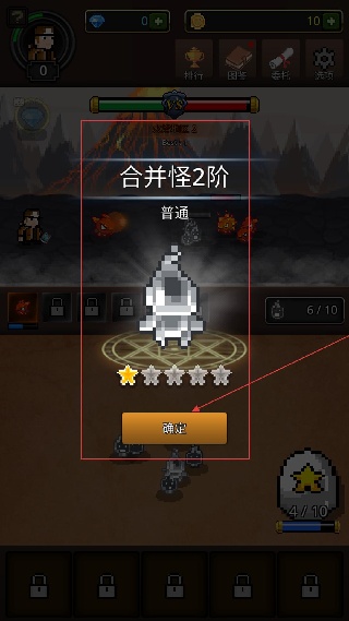 4、成功合成2階合并怪,該階怪物屬性較1階有所提升,點擊確定后可繼續在火焰地區2探索,高階怪物能更高效地應對更強的敵人。