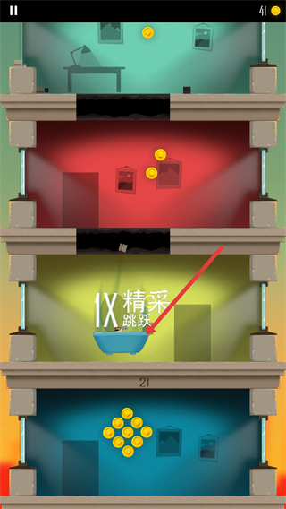 3、借助浴缸類道具可實現跳躍,同時拾取周圍金幣,該效果能幫助快速通過多層區域,需留意金幣分布位置,高效獲取資源。