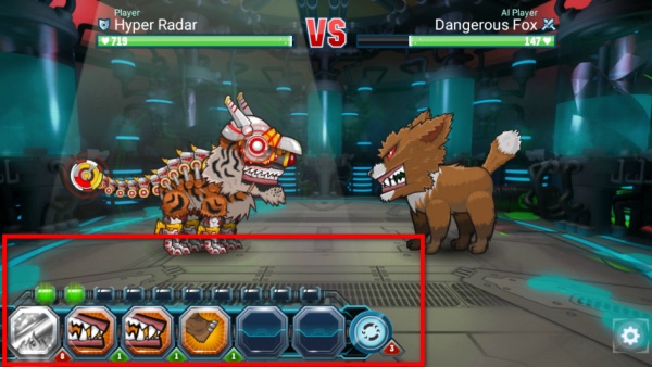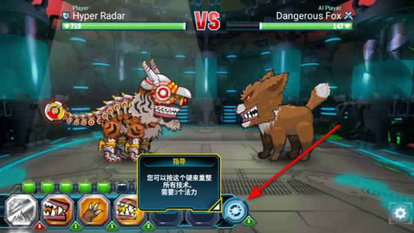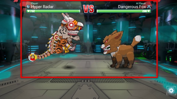1、操控機械虎等變異動物對戰,開局看雙方生命值,在科幻實驗室對決,釋放技能消耗敵方生命,先打空對方生命值獲勝。