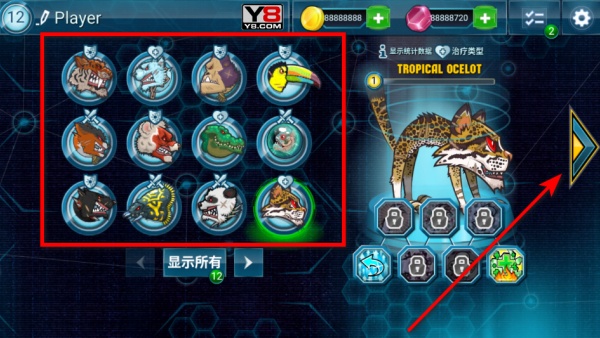 1、在動物選擇界面,有多種變異動物可供挑選,點擊動物圖標可查看其詳情,選擇心儀的變異動物參與對戰。