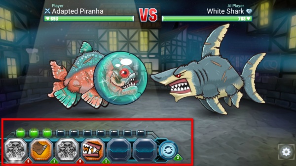 2、對戰時下方有技能欄,積累足夠法力后點擊技能釋放,利用技能消耗敵方變異動物的生命值。