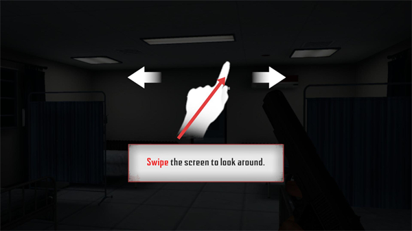 1、根據提示Swipethescreentolookaround,滑動屏幕可轉動視角,這是探索場景、觀察周邊威脅的核心操作方式。