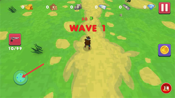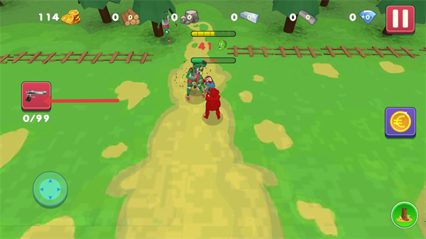 3、關卡中通過左側搖桿控制角色移動,在僵尸出現前,可先收集場景中的資源金幣、木材,為后續戰斗做準備。