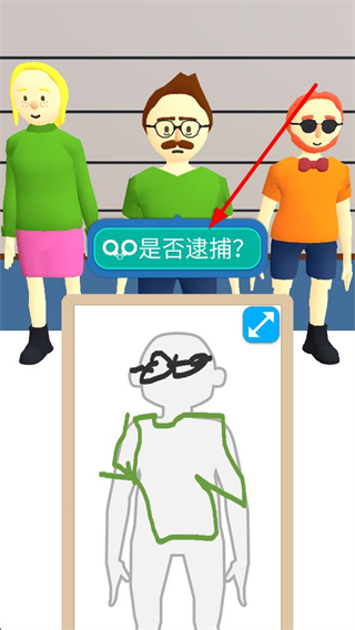 3、繪制完成后,就要對比嫌疑人畫像與lineup中的人物,判斷是否逮捕對應人員。