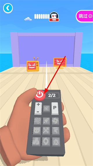 3、關卡中遇到多個電視怪時,點擊遙控器上的電源按鈕,可對其進行操作,同時注意上方的進度和老板標識,完成挑戰。