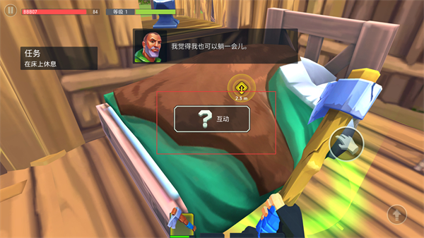 1、接到在床上休息的任務,找到床并點擊互動,完成休息任務,恢復狀態,推進游戲進程。
