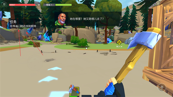 2、根據任務指引,前往傳送門附近尋找凱特,在開放世界中探索,留意任務距離提示,逐步靠近目標。