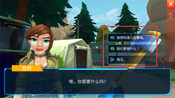 4、找到凱特后與之對話,可選擇不同選項了解信息或承接任務,根據需求選擇,繼續探索游戲的末日生存劇情。