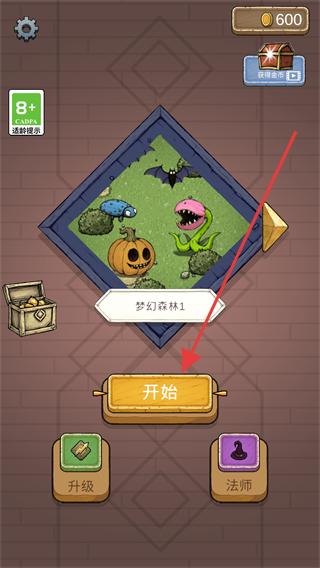 1、點擊對應按鈕進入關卡,可利用升級、法師功能提前優化角色能力,為關卡挑戰做好前期準備。