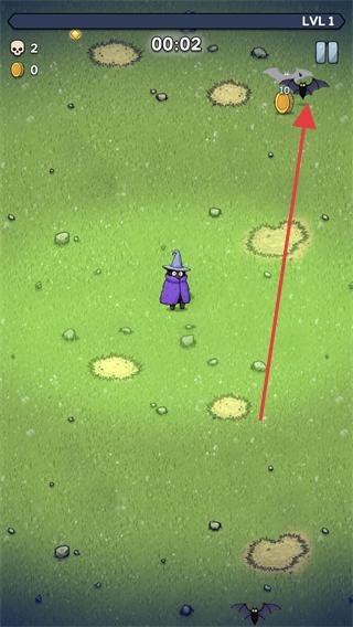 3、進入關卡后,操控角色移動,借助所選武器自動攻擊怪物,避免被四周的怪物靠近。
