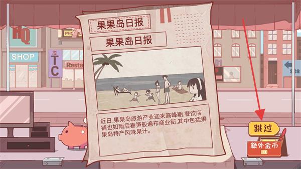 2、出現劇情報紙界面時,點擊跳過按鈕可快速進入后續經營環節,節省時間專注于店鋪的運營操作。