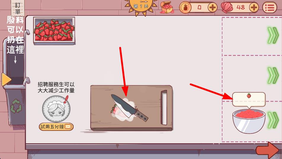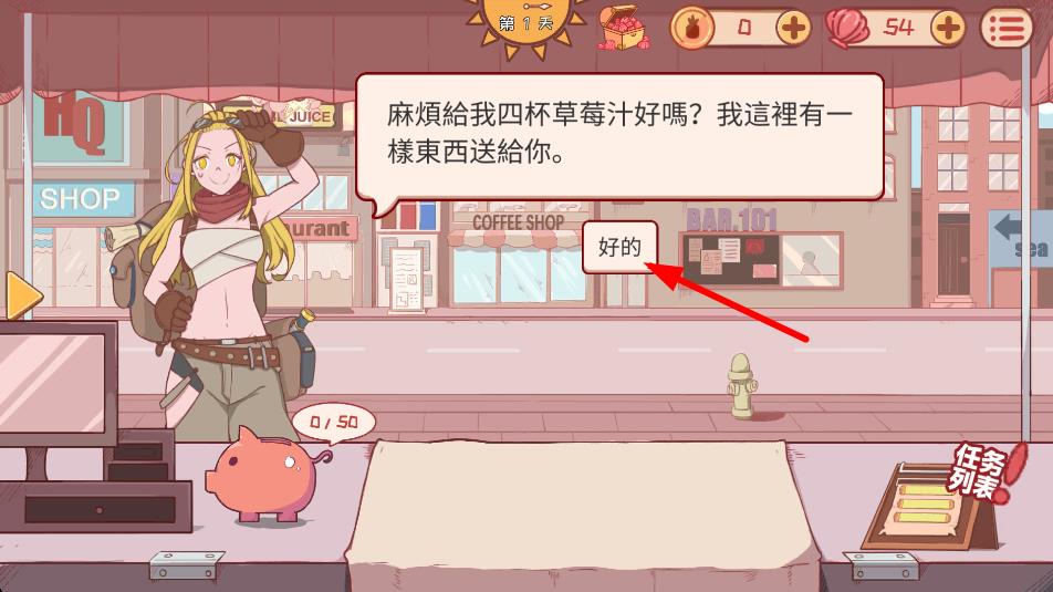 1、顧客提出要四杯草莓汁的需求,點擊好的選項回應顧客,接下訂單,開啟本次的果汁制作任務流程。