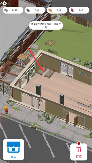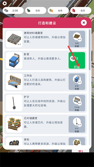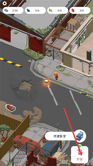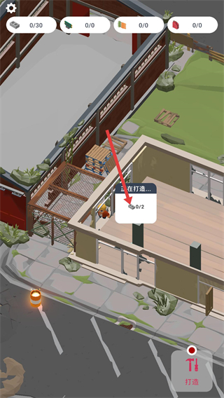 1、點擊打造按鈕進入建造界面,這是解鎖生存建設如臥室、工作臺的入口,需消耗資源推進營地建設。
