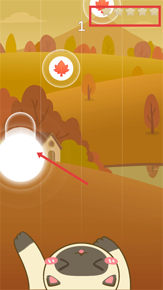 2、在演奏過程中需點擊掉落的楓葉泡泡,根據泡泡的位置和節奏準確操作,右上角的星級代表演奏評分,準確點擊可提升星級。