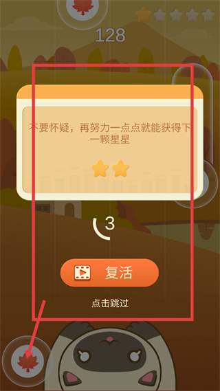 3、若演奏中錯過太多泡泡就會失敗,會彈出提示框顯示當前獲得的星級,可選擇復活繼續演奏或點擊跳過結束本輪。