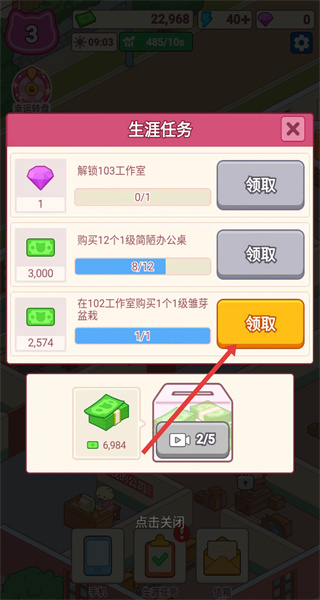 4、完成物品購置等任務要求后,回到生涯任務界面,找到已達成條件的任務,點擊對應的領取按鈕,就能獲取該任務對應的游戲獎勵。