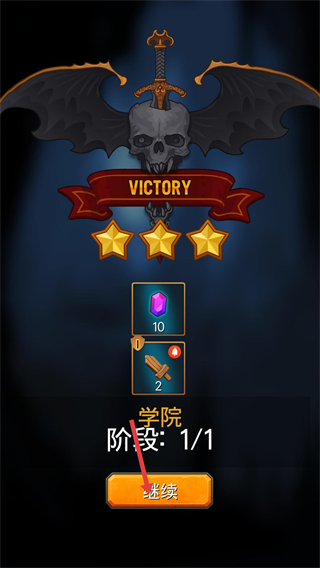 4、通關后會獲得星級評價與道具獎勵,點擊繼續可進入下一個流程,持續推進關卡以解鎖更多內容。