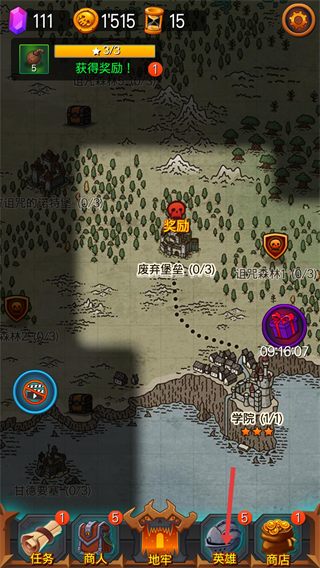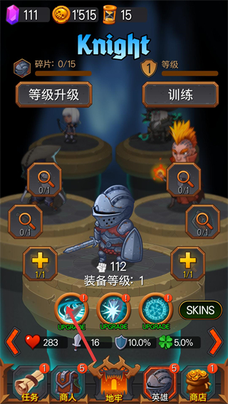 1、點擊英雄進入角色界面,這是查看與強化角色的核心入口,可通過訓練、升級技能提升角色戰斗力。