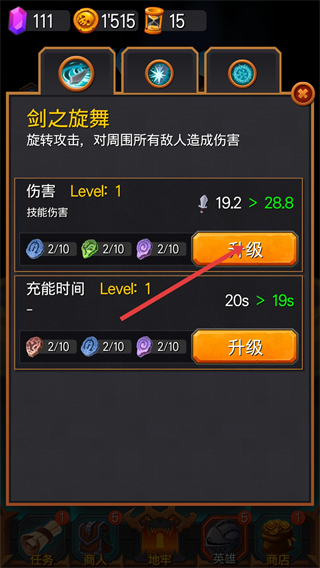 3、選擇劍之旋舞技能,消耗對應材料點擊升級,可提升技能傷害與縮短充能時間,增強范圍攻擊能力。