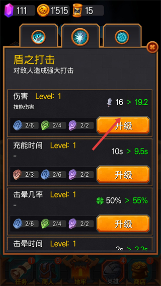 4、升級盾之打擊技能,能提升傷害、縮短充能時間并增加擊暈效果,強化騎士的控制與輸出雙重能力。