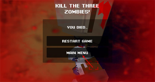 3、游戲失敗后界面顯示YOU DIED提示,提供重新開始游戲和主菜單兩個選項,點擊主菜單按鈕,返回游戲的初始設置頁面。