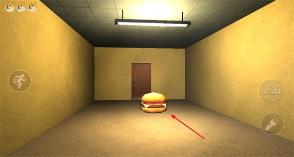 4、行進至目標房間后,看到場景中央的漢堡,操作角色靠近該漢堡,完成當前關卡對應的收集任務。