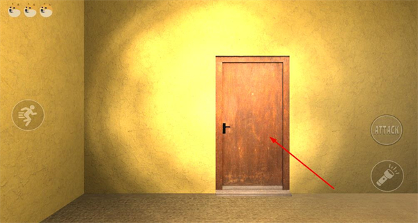 2、進入房間場景后,看到墻面與房門,操作角色移動至房門位置,觸發場景切換,進入帶有文字提示的新區域。