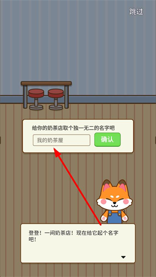 1、進入游戲后,需給奶茶店取獨特名稱,輸入框填寫名稱后點擊確認,即可完成店鋪命名并開啟經營流程。