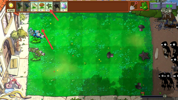 2、進入關卡后,利用陽光資源持續補充植物,優先覆蓋僵尸密集區域。