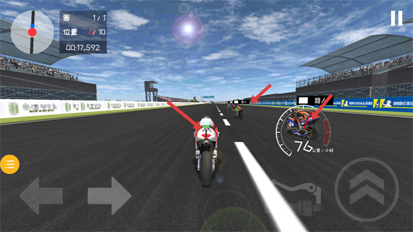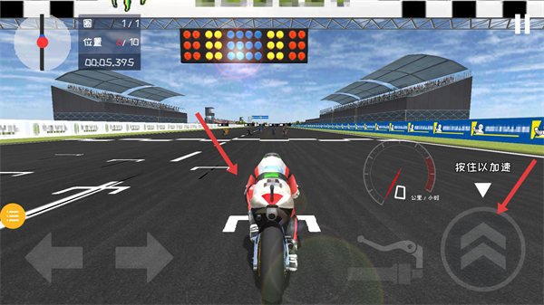 2、進入賽道后,左側左右鍵控制賽車轉向,右側按住箭頭按鈕持續加速。