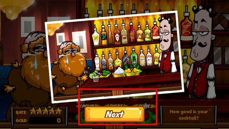4、調好飲品后顧客會給出反饋,之后點擊繼續按鈕進入下一個環節,繼續完成新的調酒任務,不斷推進游戲流程體驗更多調酒挑戰。