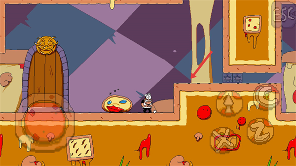 3、場景中出現披薩樣式的門,操控角色靠近該門可觸發場景切換,進入新的關卡區域,同時留意周圍的畫作元素,部分畫作可能關聯隱藏的收集物或機關。