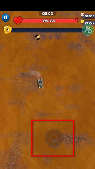 1、進入游戲后操控戰車移動,界面顯示生命值和計時,初始階段需熟悉操控方式,后續會出現敵人,要通過移動躲避攻擊并展開反擊。