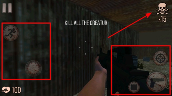2、戰斗界面有移動和武器相關按鈕,根據提示需消滅所有敵人,可通過對應按鈕操控角色移動,切換武器并瞄準敵人發起攻擊。