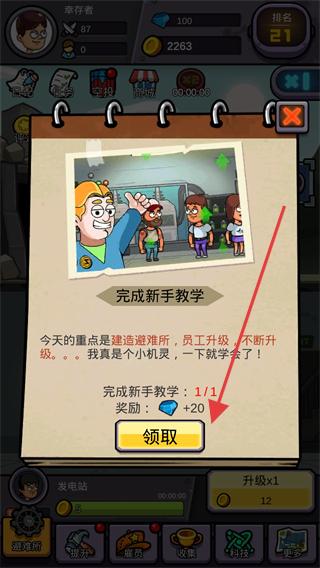 2、完成教學任務后,點擊領取按鈕獲取獎勵,這些獎勵可用于后續的建筑解鎖或升級,提升基地發展效率。