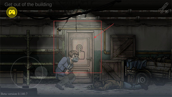 1、首先需進入安全區域躲避危險,點擊被鎖的門完成交互,這是進入庇護所的前置步驟,可避開外部威脅。