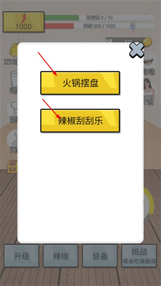 4、還可以參與辣椒刮刮樂,刮開涂層,消耗100、10000、10萬金幣,有幾率獲得海量金幣,助力吃辣能力提升。