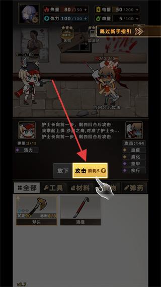 4、完成裝備組合后,使用攻擊功能,瞄準襲擊的僵尸發起攻擊,避免被其近身。
