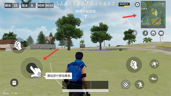 2、進入游戲前的準備階段,通過滑動搖桿可移動角色,右上角地圖可查看當前區域布局,助力前期探索規劃。